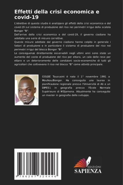 L'obiettivo di questo studio è analizzare gli effetti della crisi economica e del covid-19 sul sistema di produzione del riso nei perimetri irrigui della scatola Bongor "B".Dall'arrivo della crisi economica e del covid-19, il governo ciadiano ha adottato una serie di misure correttive.Queste misure adottate dal governo ciadiano hanno colpito in generale i fattori di produzione e in particolare il sistema di produzione del riso nei perimetri irrigui del blocco Bongor "B".Le conseguenze direttamente osservabili negli ultimi anni sono state un aumento del costo di produzione del riso per ettaro, un calo delle rese per ettaro e un deterioramento delle condizioni socio-economiche di tutti gli agricoltori che coltivavano il riso nel blocco "B" come attività principale.