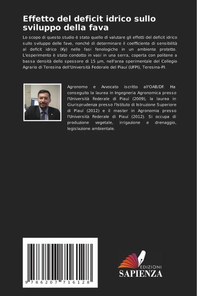 Lo scopo di questo studio è stato quello di valutare gli effetti del deficit idrico sullo sviluppo delle fave, nonché di determinare il coefficiente di sensibilità al deficit idrico (Ky) nelle fasi fenologiche in un ambiente protetto. L'esperimento è stato condotto in vasi in una serra, coperta con politene a bassa densità dello spessore di 15 µm, nell'area sperimentale del Collegio Agrario di Teresina dell'Università Federale del Piauí (UFPI), Teresina-PI.