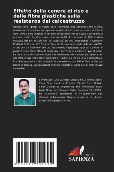 Questo libro riporta lo studio della resistenza alla compressione e della resistenza alla trazione per spaccatura del calcestruzzo con cenere di lolla di riso (RHA) e fibra plastica in diverse proporzioni. Per lo studio sperimentale è stato scelto il calcestruzzo di grado M-20. Il contenuto di RHA è stato utilizzato dal 5% al 15% con un intervallo del 5%, sostituendo il Cemento Portland Ordinario (C.P.O.) e le fibre di plastica sono state utilizzate dall'1% al 3% con un intervallo dell'1%, sostituendo l'aggregato grosso. Le fibre di plastica sono state ottenute tagliando i sacchetti di politene in piccoli pezzi. La resistenza alla compressione e la resistenza alla trazione per spaccatura del calcestruzzo sono state verificate a 7 giorni e a 28 giorni di stagionatura. I risultati mostrano che i campioni di calcestruzzo con RHA e fibre di plastica hanno mostrato una resistenza migliore rispetto ai campioni di calcestruzzo controllati.