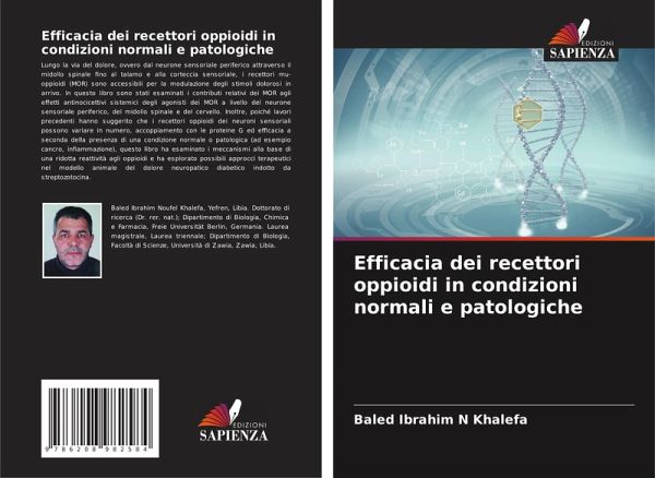 Lungo la via del dolore, ovvero dal neurone sensoriale periferico attraverso il midollo spinale fino al talamo e alla corteccia sensoriale, i recettori mu-oppioidi (MOR) sono accessibili per la modulazione degli stimoli dolorosi in arrivo. In questo libro sono stati esaminati i contributi relativi dei MOR agli effetti antinocicettivi sistemici degli agonisti dei MOR a livello del neurone sensoriale periferico, del midollo spinale e del cervello. Inoltre, poiché lavori precedenti hanno suggerito che i recettori oppioidi dei neuroni sensoriali possono variare in numero, accoppiamento con le proteine G ed efficacia a seconda della presenza di una condizione normale o patologica (ad esempio cancro, infiammazione), questo libro ha esaminato i meccanismi alla base di una ridotta reattività agli oppioidi e ha esplorato possibili approcci terapeutici nel modello animale del dolore neuropatico diabetico indotto da streptozotocina.