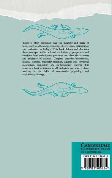 There is often confusion over the meaning and usage of terms such as efficiency, economy, effectiveness, optimization and perfection in biology. This book defines and discusses these concepts within a broad evolutionary perspective and considers how evolutionary pressures can affect the economy and efficiency of animals. Chapters consider biomaterials, skeletal systems, muscular function, aquatic and terrestrial locomotion, and cardiovascular systems.