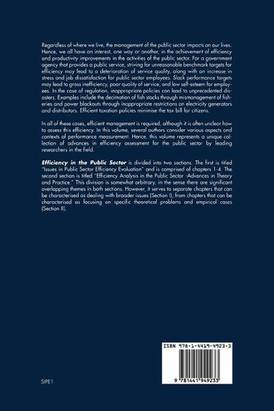 Efficiency in the Public Sector is divided into two sections. The first is titled "Issues in Public Sector Efficiency Evaluation" and comprises of chapters 1-4. The second section is titled "Efficiency Analysis in the Public Sector - Advances in Theory and Practice." This division is somewhat arbitrary, in the sense there are significant overlapping themes in both sections. However, it serves to separate chapters that can be characterised as dealing with broader issues (Section I), from chapters that can be characterised as focusing on specific theoretical problems and empirical cases (Section II).