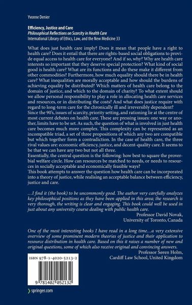 'One of the most interesting books I have read in a long time ...a very extensive overview of some prominent modern theories of justice and their application to resource distribution in health care. Based on this it raises a number of new and original questions, some of which also receive original and convincing answers.' Professor Søren Holm, Cardiff Law School, UK