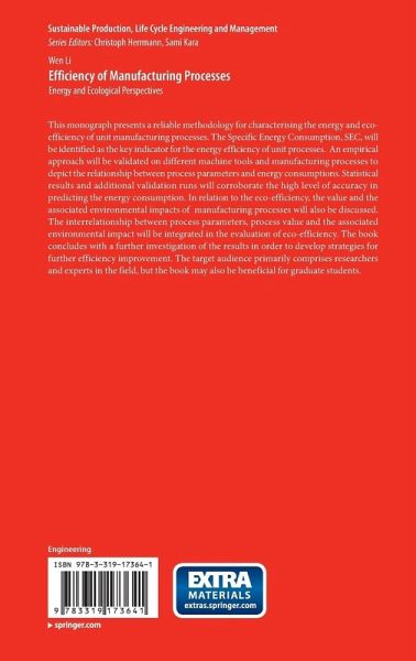 This monograph presents a reliable methodology for characterising the energy and eco-efficiency of unit manufacturing processes. The Specific Energy Consumption, SEC, will be identified as the key indicator for the energy efficiency of unit processes. An empirical approach will be validated on different machine tools and manufacturing processes to depict the relationship between process parameters and energy consumptions. Statistical results and additional validation runs will corroborate the high level of accuracy in predicting the energy consumption. In relation to the eco-efficiency, the value and the associated environmental impacts of manufacturing processes will also be discussed. The interrelationship between process parameters, process value and the associated environmental impact will be integrated in the evaluation of eco-efficiency. The book concludes with a further investigation of the results in order to develop strategies for further efficiency improvement. The target audience primarily comprises researchers and experts in the field, but the book may also be beneficial for graduate students.