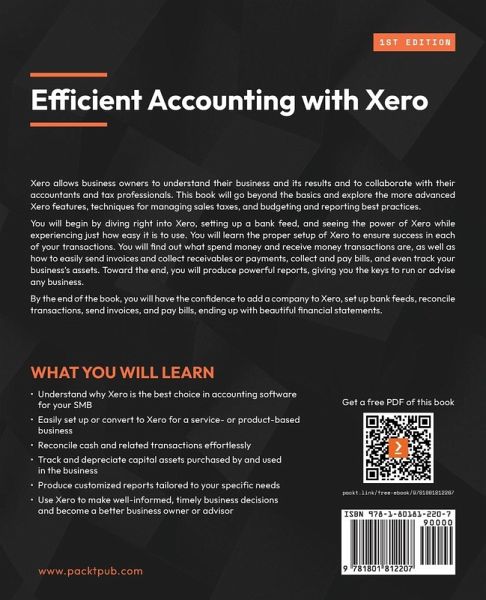 Maximize the capabilities of Xero to achieve timely and stress-free accounting for your business Purchase of the print or Kindle book includes a free PDF eBook Key Features:Become well-versed with the latest features of Xero to confidently manage all your bookkeeping tasks with ease Master the use of Xero and implement best practices to avoid costly errors Learn techniques for recording and managing financial data efficiently Book Description: Xero empowers business owners to gain insights into their business and performance and collaborate seamlessly with their accountants and tax professionals. This book goes beyond the basics and explores the more advanced Xero features, techniques, and best practices for managing sales taxes, budgeting, and reporting. You'll begin by diving right into Xero, setting up a bank feed, and exploring its power while experiencing just how easy it is to use. The book will guide you in setting up Xero the right way to ensure that you succeed in each of your transactions. As you progress through the chapters, you'll learn what spend money and receive money transactions are and be able to easily send invoices and collect receivables or payments, collect and pay bills, and even track your business assets with Xero. Toward the end, you'll be proficient at producing powerful reports, giving you the keys to running or advising any business. By the end of this Xero book, you'll have gained the confidence to add a company to Xero, set up the bank feeds, reconcile the transactions, send invoices, and pay bills, ending up with beautiful financial statements. What You Will Learn:Understand why Xero is the best choice in accounting software for your SMB Easily set up or convert to Xero for a service- or product-based business Reconcile cash and related transactions effortlessly Track and depreciate capital assets purchased by and used in the business Produce customized reports tailored to your specific need Use Xero to make informed and timely decisions and become a better business owner or advisor Who this book is for: This book is for small and medium business owners (SMBs) and bookkeepers or accountants who want to learn how to properly use and master Xero. Little to no knowledge of Xero is assumed. However, prior understanding of basic bookkeeping and accounting principles is required.