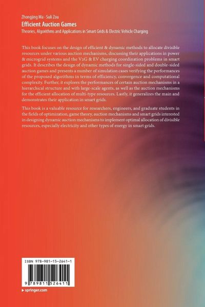 This book focuses on the design of efficient & dynamic methods to allocate divisible resources under various auction mechanisms, discussing their applications in power & microgrid systems and the V2G & EV charging coordination problems in smart grids. It describes the design of dynamic methods for single-sided and double-sided auction games and presents a number of simulation cases verifying the performances of the proposed algorithms in terms of efficiency, convergence and computational complexity. Further, it explores the performances of certain auction mechanisms in a hierarchical structure and with large-scale agents, as well as the auction mechanisms for the efficient allocation of multi-type resources. Lastly, it generalizes the main and demonstrates their application in smart grids.