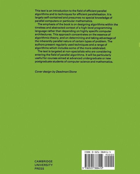 This largely self-contained text is an introduction to the field of efficient parallel algorithms and to the techniques for efficient parallelism, that presumes no special knowledge of parallel computers or particular mathematics. The book emphasizes designing algorithms within the timeless and abstracted context of a high-level programming language rather than within highly specific computer architectures. This is an approach that concentrates on the essence of algorithmic theory, determining and taking advantage of the inherently parallel nature of certain types of problems. The authors present regularly-used techniques and a range of algorithms including some of the more celebrated ones. Nonspecialists considering entering the field of parallel algorithms, as well as advanced undergraduate or postgraduate students of computer science and mathematics will find this book helpful.
