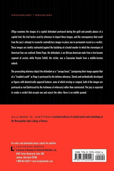 Effigy examines the images of a capital defendant portrayed, by the defense attorneys and the prosecutor, during the guilt and penalty phases of capital trial, the trial tactics used to impart these images, and the consequences that result from the jury's attempt to reconcile contradictory images to place one in permanent record as a verdict.