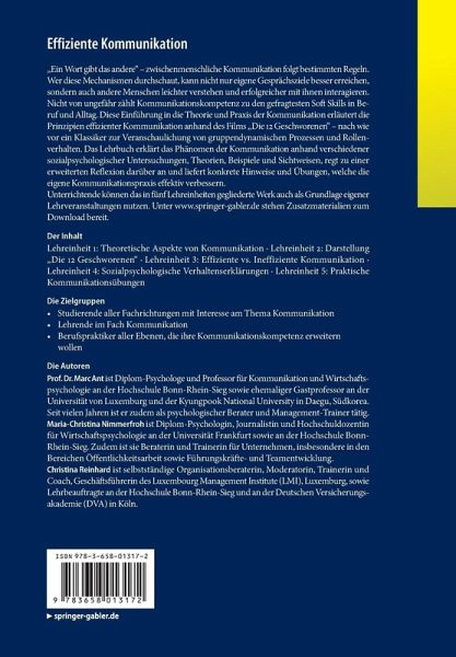 Nicht von ungefähr zählt Kommunikationskompetenz zu den gefragtesten Soft Skills in Beruf und Alltag. Diese Einführung in die Theorie und Praxis der Kommunikation erläutert die Prinzipien effizienter Kommunikation anhand des Films "Die 12 Geschworenen" - nach wie vor ein Klassiker zur Veranschaulichung von gruppendynamischen Prozessen und Rollenverhalten. Das Lehrbuch erklärt das Phänomen der Kommunikation anhand verschiedener sozialpsychologischer Untersuchungen, Theorien, Beispiele und Sichtweisen, regt zu einer erweiterten Reflexion darüber an und liefert konkrete Hinweise und Übungen, welche die eigene Kommunikationspraxis effektiv verbessern.