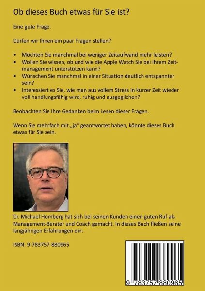 Wie Manager mittels Apple Watch ihr Zeitmanagement verbessern können, in Stress-Situationen wieder schnell entspannen und handlungsfähig werden können, und wie sie in der heutigen anspruchsvollen Zeit effektiver werden können, darum geht es in diesem Buch