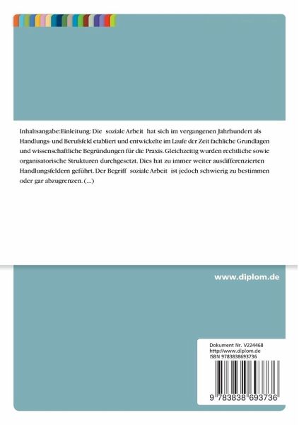 Die soziale Arbeit hat sich im vergangenen Jahrhundert als Handlungs- und Berufsfeld etabliert und entwickelte im Laufe der Zeit fachliche Grundlagen und wissenschaftliche Begründungen für die Praxis. Gleichzeitig wurden rechtliche sowie organisatorische Strukturen durchgesetzt. Dies hat zu immer weiter ausdifferenzierten Handlungsfeldern geführt.