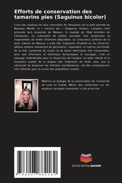L'une des espèces les plus menacées de l'Amazonie est le petit primate du Nouveau Monde, le « tamarin pie » (Saguinus bicolor). L'espèce n'est présente qu'à proximité de Manaus, la capitale de l'État brésilien de l'Amazonas, où subsistent de petites parcelles très dispersées et fragmentées de forêts fortement dégradées. La croissance continue de la zone urbaine de Manaus a créé des fragments d'habitat où les tamarins-piétons tentent maintenant de persévérer. Cependant, la matrice incriminée de la ville, composée de routes et de lignes électriques très fréquentées, ainsi que d'humains et d'animaux domestiques et sauvages, crée un paysage impénétrable pour la dispersion de l'espèce. La taille réduite et la mauvaise qualité de la plupart des fragments de forêt, ainsi que la nécessité de disperser les individus excédentaires, ont des conséquences très néfastes pour la survie des populations locales.