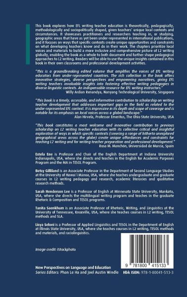 This book explores how EFL writing teacher education is shaped, given teachers' unique local contexts and circumstances. The chapters prioritize local voices and materials in order to help build a more comprehensive picture of L2 writing globally, enabling the book as a whole to both document and further shape pedagogical approaches to L2 writing.