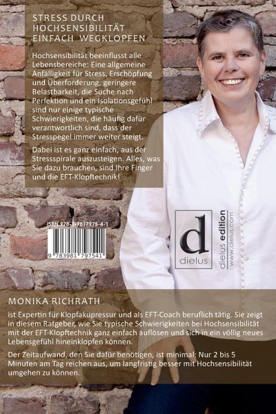 STRESS DURCH HOCHSENSIBILITÄT EINFACH WEGKLOPFEN: Hochsensibilität beeinflusst alle Lebensbereiche: Eine allgemeine Anfälligkeit für Stress, Erschöpfung und Überforderung, geringere Belastbarkeit, die Suche nach Perfektion und ein Isolationsgefühl sind nur einige typische Schwierigkeiten, die häufig dafür verantwortlich sind, dass der Stresspegel immer weiter steigt. Dabei ist es ganz einfach, aus der Stressspirale auszusteigen. Alles, was Sie dazu brauchen, sind Ihre Finger und die EFT-Klopftechnik!