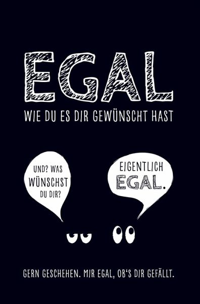 Das originelle & witzige Geschenk für alle, denen egal ist, was man ihnen schenkt. Dieses Buch ist voll (mit) EGAL. Wo man auch hinsieht, überall ist alles EGAL. Auf fast leeren Seiten findet der oder die Beschenkte kreative EGAL-Variationen und aberwitzige EGAL-Wortspiele, die selbst das hartnäckigste "Mir EGAL, was ich bekomme!" in ein "Das ist perfekt!" verwandelt. Das perfekte Geschenk für EGAL-Wünscher - witzig, kreativ & passend zu jedem Anlass, EGAL ob zum Geburtstag oder zu Weihnachten...