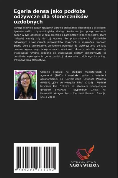 Istnieje niewiele badä ¿¿cz¿cych upraw¿ s¿onecznika ozdobnego z aspektami ¿ywienia ro¿lin i ¿yzno¿ci gleby, dlatego konieczne jest przeprowadzenie badä w tym obszarze w celu okre¿lenia parametrów ¿róde¿ nawozów, które najlepiej nadaj¿ si¿ do tej uprawy. Po przeanalizowaniu sk¿adników od¿ywczych i toksycznych pierwiastków zawartych w makroficie wodnym Egeria densa stwierdzono, ¿e istnieje potencjä do wykorzystania go jako nawozu organicznego, a wysuszony i cz¿¿ciowo roz¿o¿ony makrofit wykazuje w¿äciwo¿ci fizyczne podobne do w¿äciwo¿ci pod¿o¿y komercyjnych, co umo¿liwia wykorzystanie go w produkcji s¿onecznika ozdobnego i czyni go zrównowäon¿ alternatyw¿.