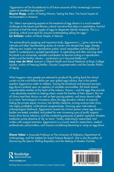 "Thank goodness for Diane Tober's thorough, brilliant, and eminently readable ethnography of egg donors. Her research on the medical, physical, and social impacts of egg donation elaborates the experiences of the donors who essentially bank-roll the multi-billion dollar IVF industry. This fascinating read offers a long overdue understanding of the impact of IVF. Tober's book is essential reading for anyone who wishes to understand contemporary kinship and family formations, as well as the disgraceful ways that young women are treated by the industry."
