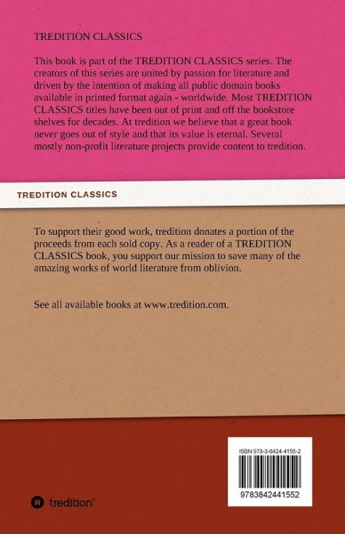 This book is part of the TREDITION CLASSICS series. The creators of this series are united by passion for literature and driven by the intention of making all public domain books available in printed format again - worldwide. At tredition we believe that a great book never goes out of style. Several mostly non-profit literature projects provide content to tredition. To support their good work, tredition donates a portion of the proceeds from each sold copy. As a reader of a TREDITION CLASSICS book, you support our mission to save many of the amazing works of world literature from oblivion.