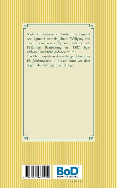 Nach dem historischen Vorbild des Lamoral von Egmond schrieb Johann Wolfgang von Goethe sein Drama über Egmont, welches nach 12-jähriger Bearbeitung erst 1887 abgeschlossen und 1888 gedruckt wurde. Das Drama spielt in den sechziger Jahren des 16. Jahrhunderts in Brüssel kurz vor dem Beginn des Achzigjährigen Krieges.