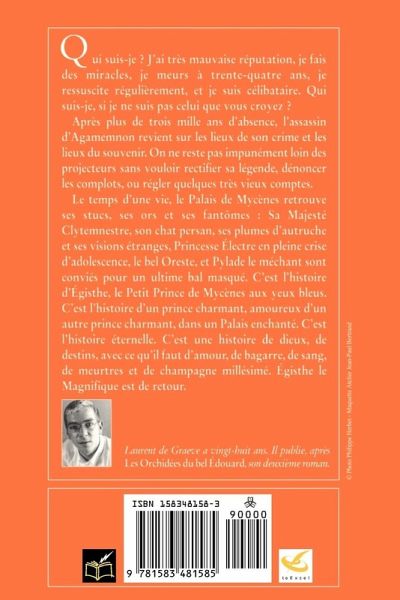 Qui suis-je? J'ai tres mauvaise reputation, je fais des miracles, je meurs a trente-quatre ans, je ressuscite regulierement, et je suis celibataire. Qui suis-je, si je ne suis pas celui que vous croyez? Apres plus de trois mille ans d'absence, l'assassin d'Agamemnon revient sur les lieux de son crime et les lieux du souvenir. On ne reste pas impunement loin des projecteurs sans vouloir rectifier sa legende, denoncer les complots, ou regler quelques tres vieux comptes. Le temps d'une vie, le Palais de Mycenes retrouve ses stucs, ses ors et ses fantomes: Sa Majeste Clytemnestre, son chat persan, ses plumes d'autruche et ses visions etranges, Princesse Electre en pleine crise d'adolescence, le bel Oreste, et Pylade le mechant sont convies pour un ultime bal masque. C'est l'histoire d'Egisthe, le Petit Prince de Mycenes aux yeux bleus. C'est l'histoire d'un prince charmant, amoureux d'un autre prince charmant, dans un Palais enchante. C'est l'histoire eternelle. C'est une histoire de dieux, de destins, avec ce qu'il faut d'amour, de bagarre, de sang, de meurtres et de champagne millesime. Egisthe le Magnifique est de retour.