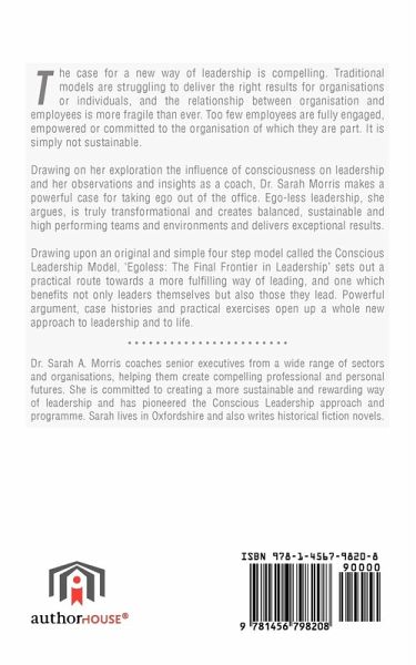 The case for a new way of leadership is compelling. Traditional models are struggling to deliver the right results for organisations or individuals, and the relationship between organisation and employees is more fragile than ever. Too few employees are fully engaged, empowered or committed to the organisation of which they are part. It is simply not sustainable. Drawing on her exploration the influence of consciousness on leadership and her observations and insights as a coach, Dr. Sarah Morris makes a powerful case for taking ego out of the office. Ego-less leadership, she argues, is truly transformational and creates balanced, sustainable and high performing teams and environments and delivers exceptional results. Drawing upon an original and simple four step model called the Conscious Leadership Model, 'Egoless: The Final Frontier in Leadership' sets out a practical route towards a more fulfilling way of leading, and one which benefits not only leaders themselves but also those they lead. Powerful argument, case histories and practical exercises open up a whole new approach to leadership and to life.