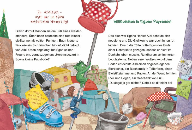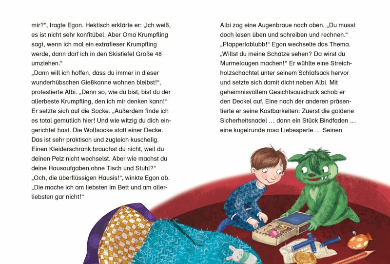 Stinkmorcheln sind eine Delikatesse für Krumpflinge! Natürlich will Menschenjunge Albi die auch mal probieren. Deswegen schneidet Egon Krumpfling ein kleines Stückchen für seinen besten Freund ab. Das schmeckt lecker, findet Albi - doch dann beginnt er zu schrumpfen und ist plötzlich bleistiftgroß wie Egon. Zunächst genießen es die beiden, durch die Krumpfburg zu toben und gemeinsam in Egons Kindergießkanne zu sitzen. Doch als Albi ein Gespräch seiner Eltern belauscht und hört, wie sehr sie ihn vermissen, wird sein Herz schwer und er bekommt schreckliches Heimweh. Jetzt müssen Egon und Albi einen Weg finden, wie Albi seine frühere Größe zurückbekommt ...