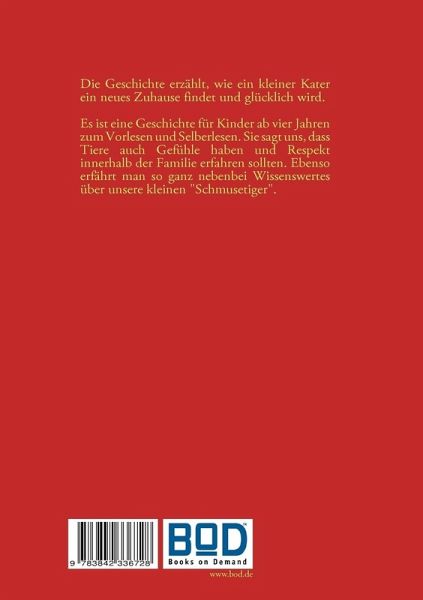Die Geschichte erzählt, wie ein kleiner Kater ein neues Zuhause findet und glücklich wird.Es ist eine Geschichte für Kinder ab vier Jahren zum Vorlesen und Selberlesen. Sie sagt uns, dass Tiere auch Gefühle haben und Respekt innerhalb der Familie erfahren sollten. Ebenso erfährt man so ganz nebenbei Wissenswertes über unsere kleinen "Schmusetiger".