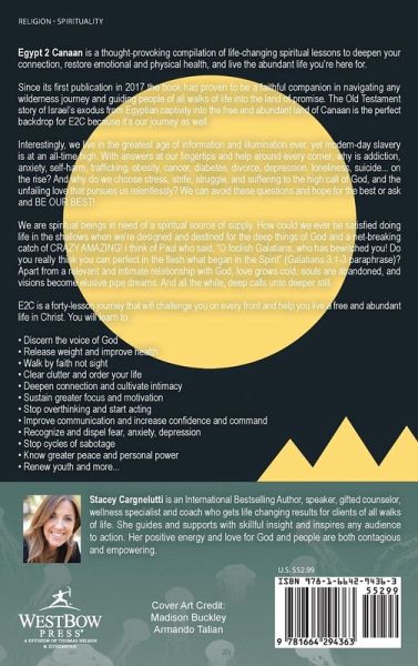 Egypt 2 Canaan is a thought-provoking compilation of life-changing spiritual lessons to deepen your connection, restore emotional and physical health, and live the abundant life you're here for. Since its first publication in 2017 the book has proven to be a faithful companion in navigating any wilderness journey and guiding you into the promised land flowing with milk and honey. The Old Testament story of Israel's exodus from Egyptian captivity into the free and abundant land of Canaan is the perfect backdrop for E2C because it's our journey as well. Interestingly, we live in the greatest age of information and illumination ever, yet modern-day slavery is at an all-time high. With answers at our fingertips and help around every corner, why is addiction, anxiety, disconnect, self-harm, trafficking, obesity, divorce, depression, cancer, diabetes, suicide... on the rise? And why are we bent to choose stress, strife, struggle, and suffering to the high call of God and unfailing love that pursues us relentlessly? We can avoid these questions and hope for the best or ask and BE OUR BEST! Quality questions create quality lives. The truth is, we are spiritual beings in need of a spiritual source of supply. I think of Paul who said in effect, "O foolish one, who has bewitched you to not obey the truth... Do you really think you can perfect in the flesh what began in the Spirit" (Galatians 3:1-3 paraphrase)? We will never be satisfied doing life in the shallows when designed and destined for the deep things of God and a net-breaking catch of CRAZY AMAZING! Apart from intimacy and divine revelation love grows cold, discipleship fades, souls are abandoned, and God-given visions become elusive pipe dreams. And deep calls unto deeper still! E2C is a forty-lesson journey that will challenge you on every front and help you live a free and abundant life in Christ. You will learn to... ¿ Discern the voice of God ¿ Release weight and improve health ¿ Walk by faith not sight ¿ Clear clutter and order your life ¿ Deepen connection and cultivate intimacy ¿ Sustain greater focus and motivation ¿ Stop overthinking and start acting ¿ Improve communication and increase confidence and command ¿ Recognize and dispel fear, anxiety, depression ¿ Stop cycles of sabotage ¿ Know greater peace and personal power ¿ Renew youth and more...