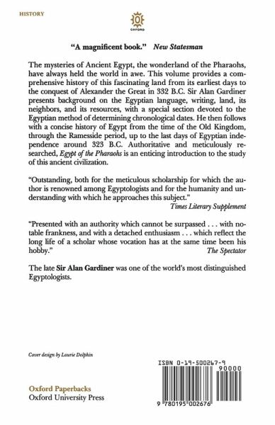 The mysteries of Ancient Egypt, the wonderland of the Pharaohs, have always held the world in awe. This volume provides a com-prehensive history of this fascinating land from its earliest days to the conquest of Alexander the Great in 332 B.C. Sir Alan Gardiner presents background on the Egyptian language, writing, land, its neighbors, and its resources, with a special section devoted to the Egyptian method of determining chronological dates.