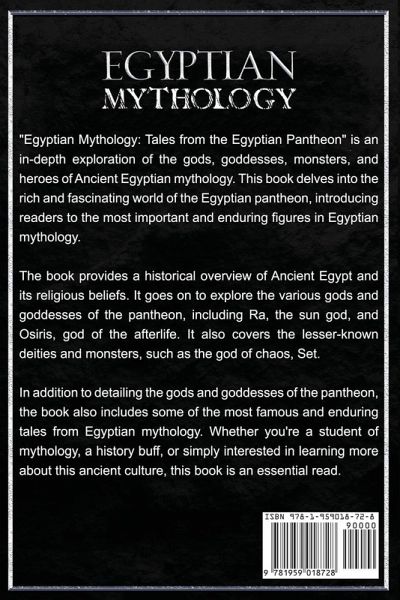 EGYPTIAN MYTHOLOGY Discover the rich and fascinating world of Egyptian Mythology with this new book, "Egyptian Mythology: Tales from the Egyptian Pantheon". This comprehensive guide takes you on a journey through the heart of ancient Egypt and its pantheon of gods and goddesses. Embark on a journey through time and learn about the beliefs and customs of the ancient Egyptians. This book offers in-depth coverage of the different gods and goddesses, from Ra, the sun god, to Anubis, the god of mummification. You'll discover how the Egyptians lived and worshipped, and learn about the many myths and legends that were passed down from generation to generation. This book brings to life some of the most famous stories from this ancient civilization, while providing a historical overview of Ancient Egypt and its religious beliefs. It explores the various gods and goddesses of the pantheon, while also covering the lesser-known deities and monsters, such as the god of chaos, Set. Whether you're a history buff, mythology lover, or simply looking to learn more about the ancient world, "Egyptian Mythology: Tales from the Egyptian Pantheon" is the perfect book for you. So, why wait? Order your copy today and start exploring the world of ancient Egypt and its fascinating mythology!