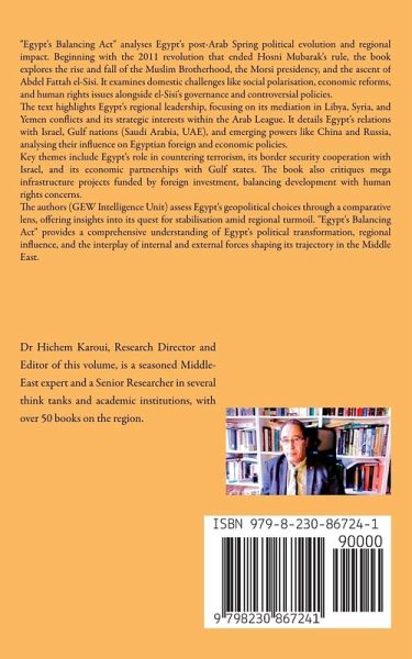 "Egypt's Balancing Act" deeply examines the history and evolution of a nation's politics during and after the Arab Spring. It also covers the unprecedented changes that Egypt underwent in its global relations. It is no wonder that Egypt stands tall among the other populous nations in the Middle East. Blessed with a rich history, it has always been at the centre of the political and geo-strategic landscape in this part of the world. This particular book highlights Egypt's geo-political identity transformation by analysing its domestic issues alongside its relationships with allies and adversaries. The Arab Spring was, in fact, a paradigm shift for Egypt as it removed the politically stagnant Hosni Mubarak in 2011. His removal sparked chaotic oscillations in the country's politics. The central narrative revolves around the revolution and its slow build-up. Shifting away from previously embraced strategies focused solely on social justice, a democratic shift, aesthetic programmes, and governmental reforms were vital in rephrasing the geo-political discourse within Egypt. It also illustrates the subsequent rise and fall of the Muslim Brotherhood, the Morsi presidency, the ensuing national protests, and the social fragmentation that later enabled the surge of Abdel Fattah el-Sisi. Egypt, under el-Sisi, entered a period marked by a contentious political stabilisation and economic restructuring. One of the most intriguing aspects of the book is its focus on the delicate balance between the ruling government's administration and the constitutional order sought by the population. This part of the book provides insightful perspectives that will engage readers and deepen their understanding of Egypt's political landscape. It also considers some of the government's areas of expenditure, such as the foreign investment-oriented mega infrastructure projects, alongside human rights challenges and political dissent. The book's authors make a concerted effort to describe Egypt's approach to regional affairs, a key argument of the book. Egypt wields significant power and plays a leadership role in shaping the politics and relationships of other Arab states. The book provides a detailed explanation of Egypt's mediating activities and its role in the Arab League. It examines Egypt's strategic interests and how they address regional concerns such as the wars in Libya, Syria, and Yemen and the rise of terrorism. The book aims to position Egypt within the context of other world and regional powers. It also discusses Egypt's relations with Israel, detailing the adjacent border security cooperation and the more distant cooperation. Furthermore, the book discusses Egypt's relations with the Gulf states, Saudi Arabia, and the United Arab Emirates, stressing how economic aid and shared objectives are central to developing relations. Further, the book covers emerging powers like China and Russia and examines these countries' impact on Egypt's foreign and economic policy. This discussion is important for understanding these powers' influence on Egypt's domestic politics and regional policies and explaining the geopolitical dimensions of Egypt's decisions. "Egypt's Balancing Act attempts to capture the essence of Egypt's political history and its position within the Middle East. The authors' insights on the interplay of Egypt's internal dynamics and external influences provide a fundamental interpretation of Egypt's search for equilibrium and ambitions in the region's volatile environment.