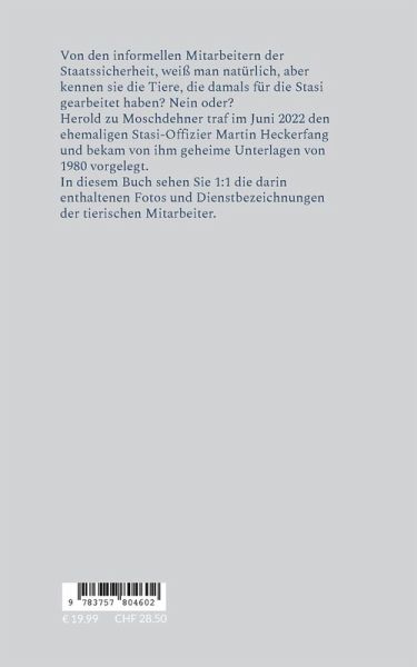 Von den informellen Mitarbeitern der Staatssicherheit, weiß man natürlich, aber kennen sie die Tiere, die damals für die Stasi gearbeitet haben? Nein oder?Herold zu Moschdehner traf im Juni 2022 den ehemaligen Stasi-Offizier Martin Heckerfang und bekam von ihm geheime Unterlagen von 1980 vorgelegt. In diesem Buch sehen Sie 1:1 die darin enthaltenen Fotos und Dienstbezeichnungen der tierischen Mitarbeiter.