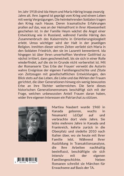 Illustrierte Ausgabe: Im Jahr 1918 sind Ida Heym und Maria Häring knapp zwanzig Jahre alt. Ihre Jugend ist geprägt vom Krieg und einem Leben mit wenig Vergnügungen. Die heimkehrenden Soldaten tragen den Krieg nach Hause. Deren traumatische Erfahrungen prallen auf das, was an der Heimatfront in ihrer Abwesenheit geschehen ist. In der Familie Heym wächst die Angst einer Entwicklung wie in Russland, während Familie Häring den Zusammenbruch des Kaiserreichs in Orientierungslosigkeit erlebt. Umso wichtiger wird der Halt in der jeweiligen Religion. Inmitten dieser wirren Zeiten verliebt sich Maria in den Soldaten Friedrich, den sie im Lazarett kennenlernt. Ida hingegen ist über ihren unverhofften Verehrer Gottfried zunächst irritiert, dann geschmeichelt, bis sie sich in einer Rolle wiederfindet, auf die sie im Grunde nicht vorbereitet ist. Mit der Romanserie 'Das Erbe der Frauen' verwebt die Autorin wahre Ereignisse der eigenen Familiengeschichte und Zitate von Zeitzeugen mit gesellschaftlichen Entwicklungen, den Blick stets auf das Leben, die Liebe und das Wirken der Frauen gerichtet, die über Generationen hinweg ein wenig bewusstes Erbe an ihre Töchter weiterreichen. Die Serie dieses historischen Generationenromans beschäftigt sich mit der Frage, welchen unbewussten Anteil Frauen daran haben, wider ihre eigenen Interessen ein Patriarchat zu stützen.