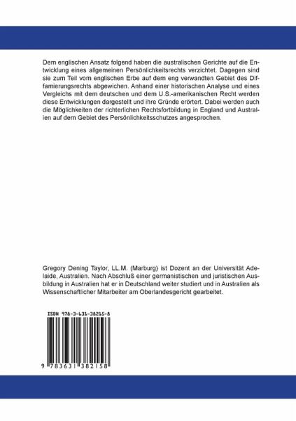 Dem englischen Ansatz folgend haben die australischen Gerichte auf die Entwicklung eines allgemeinen Persönlichkeitsrechts verzichtet. Dagegen sind sie zum Teil vom englischen Erbe auf dem eng verwandten Gebiet des Diffamierungsrechts abgewichen. Anhand einer historischen Analyse und eines Vergleichs mit dem deutschen und dem U.S.-amerikanischen Recht werden diese Entwicklungen dargestellt und ihre Gründe erörtert. Dabei werden auch die Möglichkeiten der richterlichen Rechtsfortbildung in England und Australien auf dem Gebiet des Persönlichkeitsschutzes angesprochen.