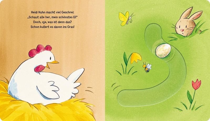 Huch, was kullert da dem kleinen Osterhasen Henri vor die Pforten? Ein wunderschönes weißes Ei! Gewaschen, poliert und kunterbunt bemalt, versteckt er es bei Huhn Heidi im Nest. Was für eine wunderbare Oster-Überraschung, als daraus ein zuckersüßes flauschiges Küken schlüpft!