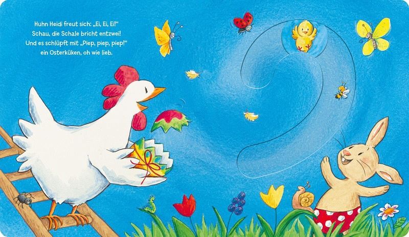 Mit interaktiven Spielelementen: Ei putzen, bemalen und versteckenLiebevoll erzählte Ostergeschichte für Kinder ab 1 JahrIn Reimen erzählt und fröhlich illustriert