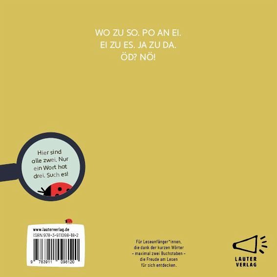 Huhn und Hahn suchen ihr Ei. Doch ist das Ei, das sie finden ihres? Egal! Als plakatives Comic mit großer Schrift in Großbuchstaben, lädt diese Geschichte ein, erste sehr kurze Wörter und Laute zu entdecken und sich im Lesen auszuprobieren. Denn das Besondere: Das Buch kommt mit sehr kurzen Wörtern aus (max. 2 Buchstaben lang). Geeignet für Vorschulkinder bzw. Kinder, die die ersten Buchstaben für sich entdeckt haben. Wörter mit zwei Buchstaben machen ca. 12% der 100 häufigsten Wörter in der deutschen Sprache aus. So kann ein erster Sichtwortschatz angelegt werden, auf dem Kinder ihre Lese- und Schreibfähigkeiten aufbauen können. Durch die Konzentration auf sehr kurze Wörter erzielen kleine/junge Leser*innen schnell Leseerfolge und entwickeln Selbstvertrauen und Selbstmotivation. Doch das Beste: Sie entdecken die Freude am Lesen!