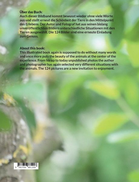 Auch dieser Bildband kommt bewusst wieder ohne viele Worte aus und stellt erneut die Schönheit der Tiere in den Mittelpunkt des Erlebens. Der Autor und Fotograf hat aus seinen bislang unveröffentlichten Bildern unterschiedliche Situationen mit den Tieren ausgewählt. Die 124 Bilder sind eine Einladung zum Genuss.This illustrated book again is supposed to do without many words and oncemore puts the beauty of the animals at the center of the experience. From his up to today unpublished photos the author and photographer has again selected very different situations with the animals. The 124 pictures are once more an invitation to enjoyment.