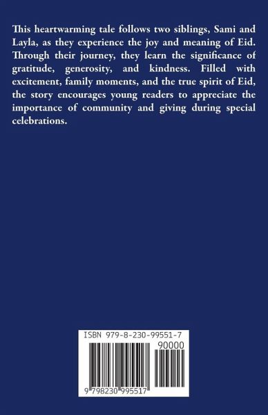 This heartwarming tale follows two siblings, Sami and Layla, as they experience the joy and meaning of Eid. Through their journey, they learn the significance of gratitude, generosity, and kindness. Filled with excitement, family moments, and the true spirit of Eid, the story encourages young readers to appreciate the importance of community and giving during special celebrations.