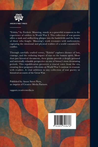 "Eidola," by Frederic Manning, stands as a powerful testament to the experience of soldiers in World War I. This collection of war poems offers a stark and unflinching glimpse into the battlefields and the hearts of those who fought. Manning's work resonates with authenticity, capturing the emotional and physical realities of a world consumed by conflict. Through carefully crafted verses, "Eidola" explores themes of loss, courage, and the enduring impact of war on the human spirit. More than just historical documents, these poems provide a deeply personal and universally relatable perspective on one of history's most devastating periods. This republication preserves a crucial voice from the era, ensuring these poignant reflections on World War I continue to resonate with readers. A vital addition to any collection of war poetry or historical accounts of the Great War. This work has been selected by scholars as being culturally important, and is part of the knowledge base of civilization as we know it. This work is in the public domain in the United States of America, and possibly other nations. Within the United States, you may freely copy and distribute this work, as no entity (individual or corporate) has a copyright on the body of the work. Scholars believe, and we concur, that this work is important enough to be preserved, reproduced, and made generally available to the public. We appreciate your support of the preservation process, and thank you for being an important part of keeping this knowledge alive and relevant.