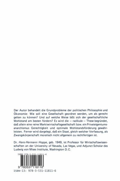 Die folgenden Studien behandeln die Frage ,Wie soli eine Gesellschaft geordnet wer den; und warum so und nicht anders'? Derart mit normativen Problem en befagt, unterscheiden sie sich grundsatzlich von der in der sozial- und politikwissenschaftli chen Literatur gegenwartig immer exklusiver gepflegten Form empirischer For schung, bei der normative Fragen entweder vollstandig ausgeblendet oder - ver breiteter noch und fragwurdiger! - durch beliebig herbeizitierte subjektive Meinun gen ,gelost' werden, und die von daher praktisch irrelevant bleiben mug oder als partikularistische (parteiliche) Propaganda einzustufen ist. Die vorliegenden Unter suchungen knupfen demgegenuber bewugt an die Tradition der Klassiker politischer Theorie an. Wie etwa Th. Hobbes oder J. Locke, D. Hume oder J. J. Rousseau, A. Smith oder K. Marx in ihren Arbeiten allgemein, objektiv begrundete Losungen fUr praktische Probleme formulieren wollen, so auch diese Arbeit; wie sie sich nicht an den methodisch-methodologischen Kanon empirisch-analytischer F orschung halten, so folgen auch die hier vorgelegten Studien einer nicht-empirischen Forschungslo gik; und wie sie sich nicht urn die Grenzen der wissenschaftlichen Fiicherteilung kummern (konnen), so reichen auch die folgenden Analysen von Philosophie bis Okonomie. In inhaltlicher Hinsicht fallt die vorliegende Arbeit nicht weniger aus dem Rah men. 1m Gegensatz zur von Th. Hobbes bis R. Nozick reichenden offiziell-offi ziosen Tradition der politischen Theorie wird die These entfaltet und begriindet, daB es fur die Existenz eines Staates (auch eines liberalen Minimalstaates) nicht den Schimmer rechtfertigbarer Griinde gibt.