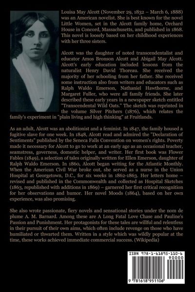 Louisa May Alcott, an American novelist and poet, was born in 1832 in Germantown, Pennsylvania. Alcott was the daughter of the famous visionary Bronson Alcott and was friend of Emerson and Thoreau. Her education was under the direction of her father, for a time at his old Temple School in Boston and, later, at home. She turned to writing in order to increase the family income and had many short stories printed in magazines and newspapers. In addition to writing, she worked as a teacher, governess, and Civil War nurse, as well as being an advocate of abolition, women's rights, and prohibition. After her experiences she wrote Hospital Sketches (1864) which won wide praise, followed by an adult novel, Moods. She is best known as the author of the novel Little Women and its sequels Little Men and Jo's Boys. Little Women is generally based on Alcott's childhood experiences with her three sisters. Alcott was writing of her own incense experiences with fame. She expired in 1888 and is buried in Sleepy Hollow cemetery in Concord Massachusetts.