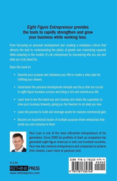 Eight Figure Entrepreneur provides the tools to rapidly strengthen and grow your business while working less. From focussing on personal development and creating a workplace culture that attracts the best to understanding the pillars of growth and maximising capacity while adapting to the market, it’s all underpinned by discovering who you are and what you truly stand for. Read this book to: • Examine your purpose and rebalance your life to create a clear plan for fulfilling your dreams • Understand the personal development mindset and focus that are crucial to eight-figure business success and living a rich and adventurous life • Learn how to win the talent war and develop and retain the superstars to drive your business forwards, giving you the freedom to do what you love • Learn the process to build and leverage assets for massive commercial gain • Become an inspirational leader of multiple purpose-driven enterprises that excite you and everyone in them