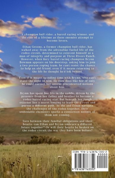 A champion bull rider, a barrel racing winner, and the ride of a lifetime as these enemies attempt to become lovers. Ethan Greene, a former champion bull rider, has walked away from the adrenaline-fueled life of the rodeo circuit, determined to reinvent himself as a man of integrity and purpose at Three Rivers Ranch. However, when fiery barrel racing champion Brynn Bowman appears on his doorstep, asking him to join a two-person roping team, he can't resist the chance to help an old friend, even if it means returning to the life he thought he'd left behind. Even if it means spending time with Brynn, who can't stand the sight of him. He sure does like her...if only he could correct her untrue preconceived notions about him. Brynn has spent her life in the saddle, driven by the pressure from her father and brother to become a rodeo barrel racing star. But beneath her tough exterior lies a secret longing to leave the circuit and pursue a different path. As she and Ethan navigate the challenges of the rodeo together, their undeniable chemistry sparks a connection neither of them saw coming. Torn between their familial obligations and their hearts, can Ethan and Brynn embrace a different future together? Or will their hearts be broken on the rodeo circuit the way they have been before? In this heartwarming Christian cowboy rodeo romance, two lost souls and driven champions are given the unexpected chance to find love, rekindle their faith, and live their small town dreams on the dusty trails of Three Rivers Ranch.
