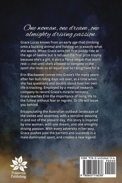 Triumph, hardship, true grit...and one crazy dream. An inspirational story about one woman, with one dream, and one almighty driving passion. Inspired by Australia's first female open bullrider. Grace Lucas knows from an early age that climbing onto a bucking animal and holding on is exactly what she wants. When Grace wins her first poddy ride at the age of twelve but is refused the first prize trophy because she's a girl, it stirs a fierce streak that won't rest - not until she's allowed to compete in the sport she loves as an equal and be recognised for it. Erin Blackwater comes into Grace's life many years after her bull riding days are over, at a time when she has questions and doubts about how her own life is tracking. Employed by a medical research company to record Grace's miracle recovery, Grace teaches Erin the importance of living life to the fullest without fear or regrets. Or life will leave you behind. Encapsulating the Australian outback landscape of the sixties and seventies, with a storyline weaving in and out of the present day, this story is inspired by one woman, with one dream, and one almighty driving passion. With every adversity in her way, Grace pushes past the barriers and succeeds in a male dominated sport, and creates a new legend.