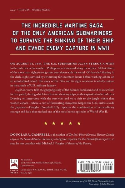 The incredible wartime saga of the only American submariners to survive the sinking of their ship and evade enemy capture in World War II. On the night of August 13, 1944, the U.S. submarine Flier struck a mine in the Sulu Sea in the southern Philippines as it steamed along the surface. All but fifteen of the more than eighty-strong crew went down with the vessel. Of those left floating in the dark, eight survived by swimming for seventeen hours before washing ashore on an uninhabited island. Eight Survived tells the gripping story of the doomed submarine and its crew from its first patrol, during which it sank several enemy ships, to the explosion in the Sulu Sea. Its story and that of its eight survivors is wholly unique in the annals of U.S. military history.