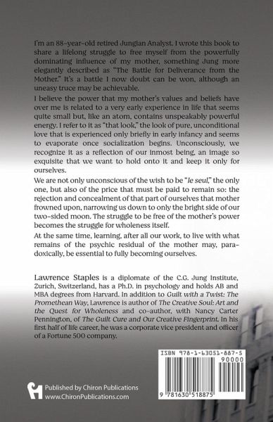 I'm an 88-year-old retired Jungian Analyst. I wrote this book to share a lifelong struggle to free myself from the powerfully dominating influence of my mother, something Jung more elegantly described as "The Battle for Deliverance from the Mother." It's a battle I now doubt can be won, although an uneasy truce may be achievable. I believe the power that my mother's values and beliefs have over me is related to a very early experience in life that seems quite small but, like an atom, contains unspeakably powerful energy. I refer to it as "that look," the look of pure, unconditional love that is experienced only briefly in early infancy and seems to evaporate once socialization begins. Unconsciously, we recognize it as a reflection of our inmost being, an image so exquisite that we want to hold onto it and keep it only for ourselves. We are not only unconscious of the wish to be "le seul," the only one, but also of the price that must be paid to remain so: the rejection and concealment of that part of ourselves that mother frowned upon, narrowing us down to only the bright side of our two-sided moon. The struggle to be free of the mother's power becomes the struggle for wholeness itself. At the same time, after all our work and self-reflection, we realize that mother, paradoxically, is essential to our experience of our self and with "that look" fuels our lifelong search for it.