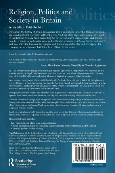The church of the eighteenth century was still reeling in the wake of the huge religious upheavals of the two previous centuries. Though this was a comparatively quiet period, this book shows that for the whole period, religion was a major factor in the lives of virtually everybody living in Britain and Ireland. Yates argues that the established churches, Anglican in England, Irelandand Wales, and Presbyterian in Scotland, were an integral part of the British constitution, an arrangement staunchly defended by churchmen and politicians alike. The book also argues that, although there was a close relationship between church and state in this period, there was also limited recognition of other religions. This led to Britain becoming a diverse religious society much earlier than most other parts of Europe. During the same period competition between different religious groups encouraged ecclesiastical reforms throughout all the different churches in Britain.