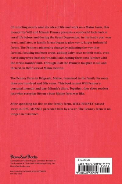 Chronicling nearly nine decades of life and work on a Maine farm, this memoir by Will and Minnie Penney presents a wonderful look back at rural life before and during the Depression, in the heady post-war years, and later, as family farms began to give way to larger industrial farms. Through it all the Penney's toughed it out and thrived on their slice of Maine heaven.