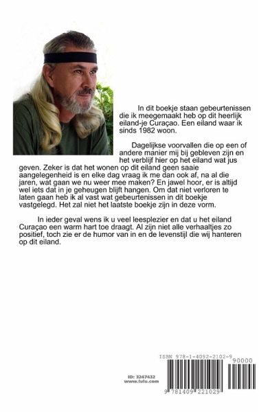 In dit boekje staan gebeurtenissen die ik meegemaakt heb op dit heerlijk eiland-je Curaçao. Een eiland waar ik sinds 1982 woon. Dagelijkse voorvallen die op een of andere manier mij bij gebleven zijn en het verblijf hier op het eiland wat jus geven. Zeker is dat het wonen op dit eiland geen saaie aangelegenheid is en elke dag vraag ik me dan ook af, na al die jaren, wat gaan we nu weer mee maken? En jawel hoor, er is altijd wel iets dat in je geheugen blijft hangen. Om dat niet verloren te laten gaan heb ik al vast wat gebeurtenissen in dit boekje vastgelegd. Het zal niet het laatste boekje zijn in deze vorm. In ieder geval wens ik u veel leesplezier en dat u het eiland Curaçao een warm hart toe draagt. Al zijn niet alle verhaaltjes zo positief, toch zie er de humor van in en de levenstijl die wij hanteren op dit eiland.